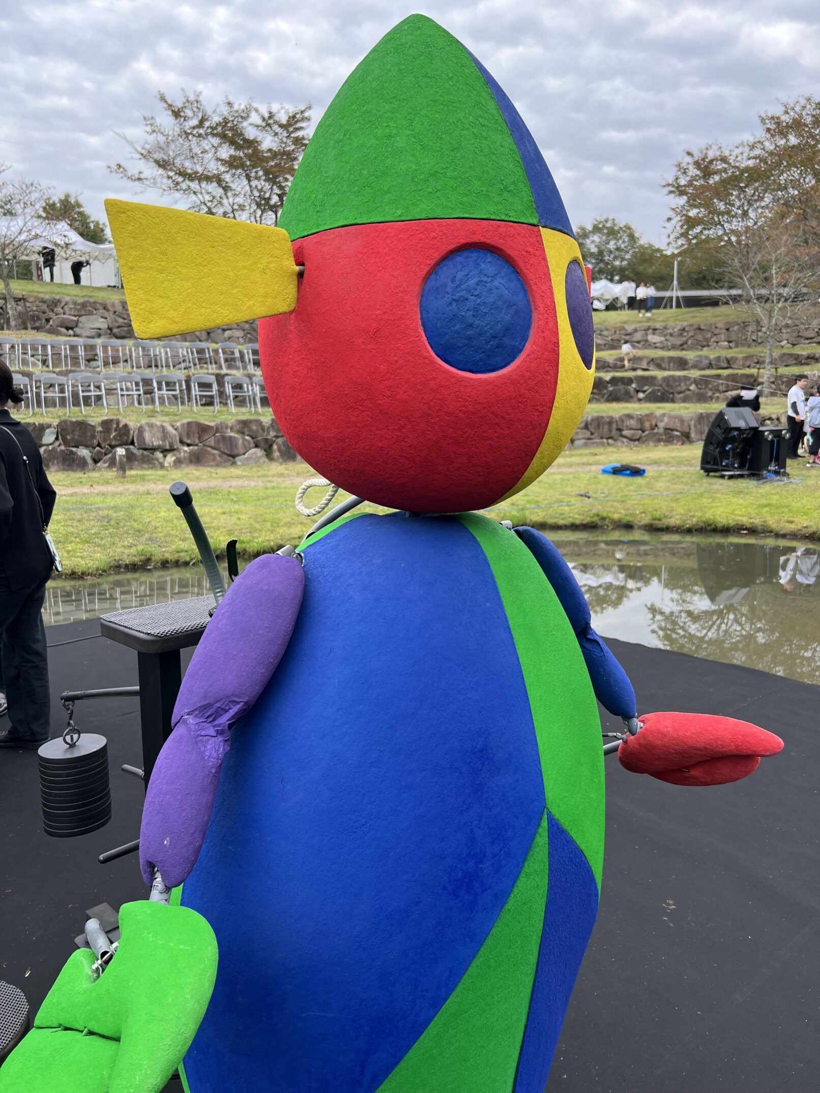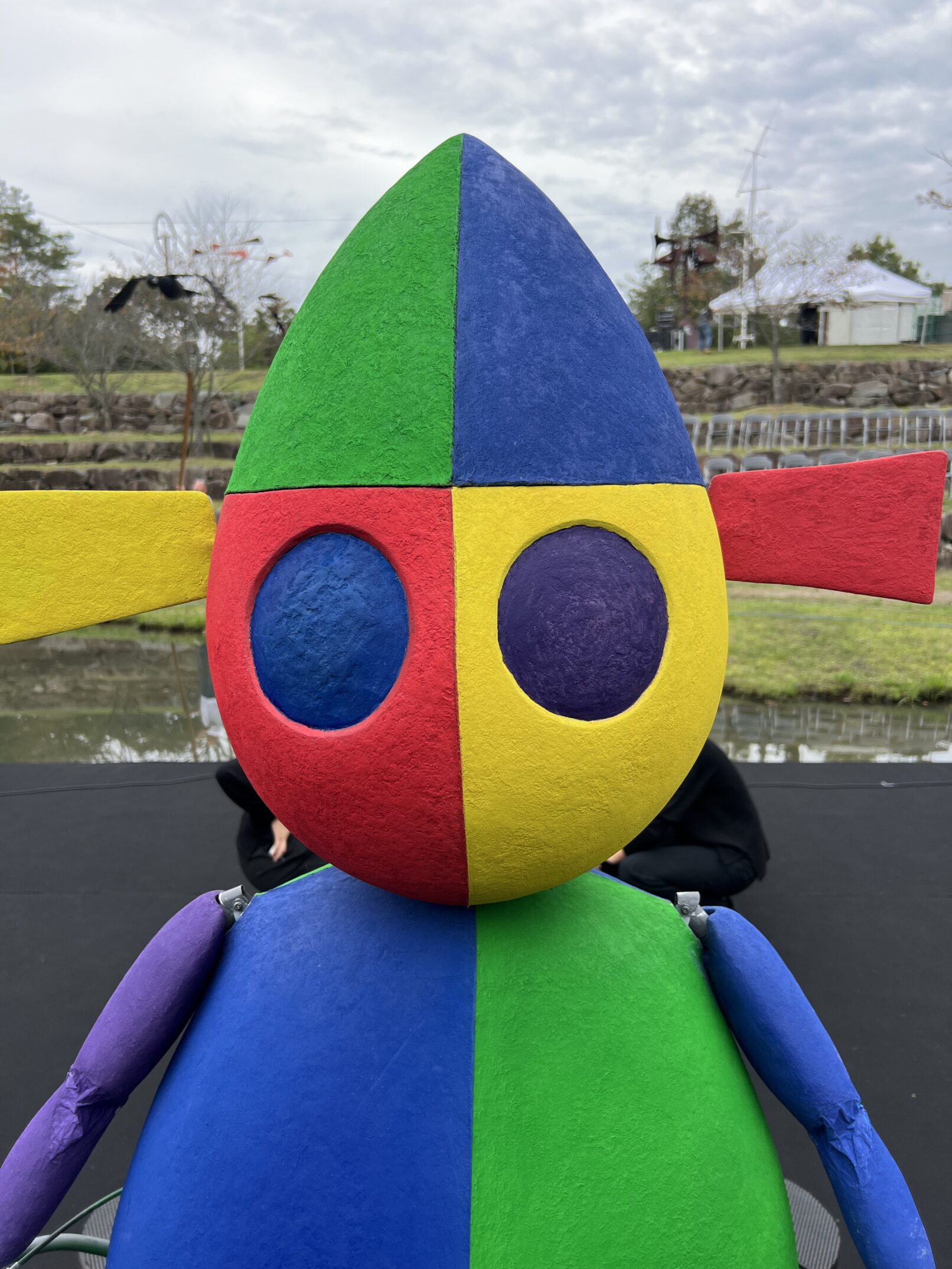 三田に降り立った宇宙人・サンダリーノの大型マリオネットを作成しました。