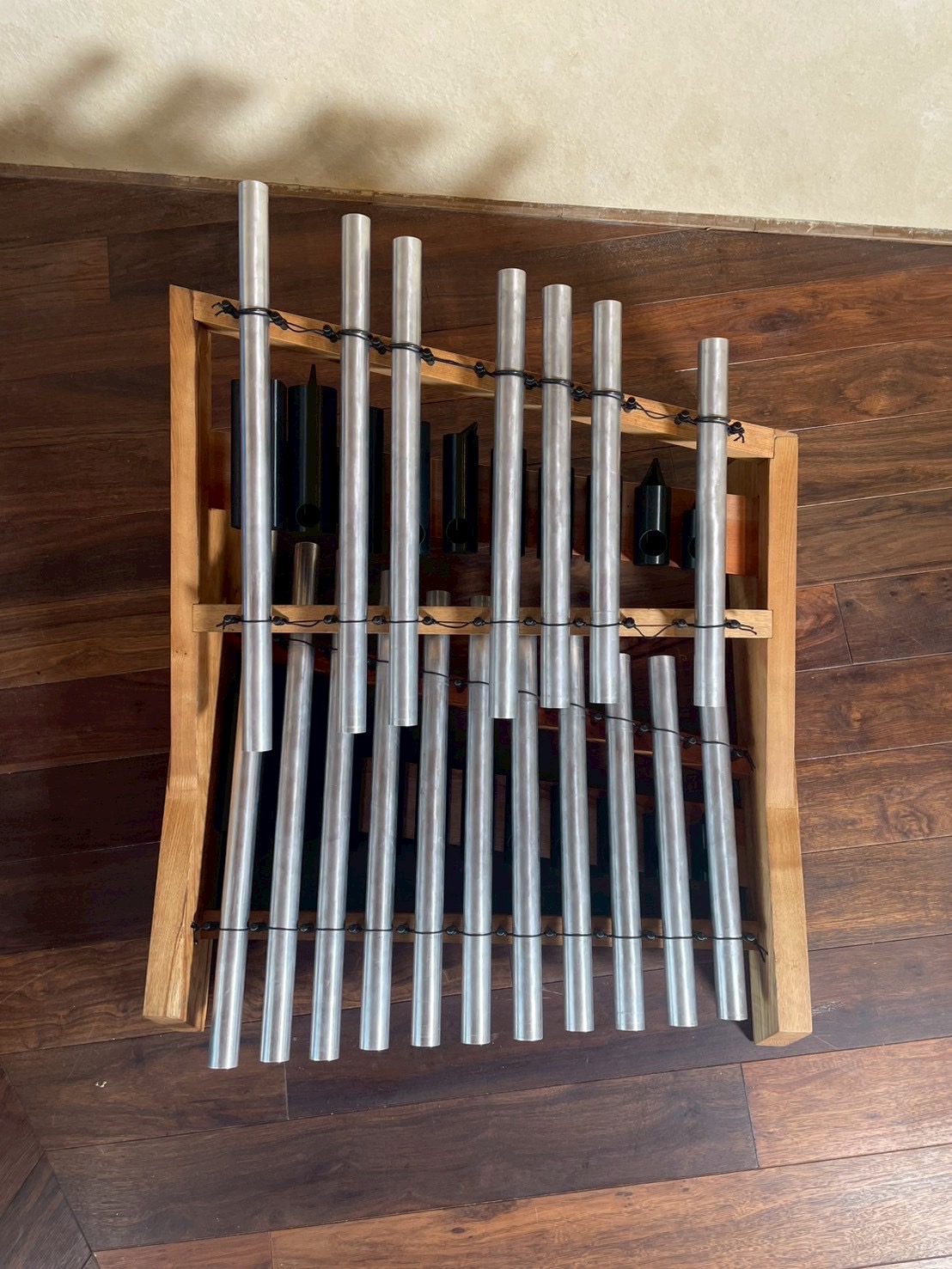 構造に関してもガムランの考え方を基礎に、共鳴管を鍵盤の下に配置、また鍵盤を浮かせるように取り付けることで長いサステインと音量を最大限に引きだしています。
